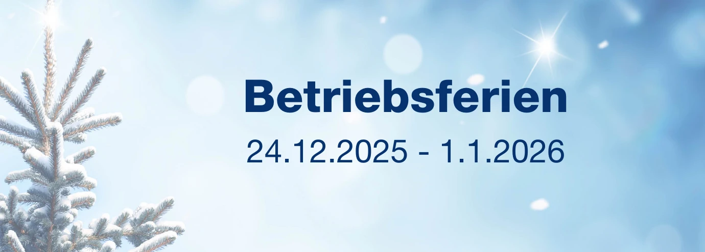 Vom 24.12.2025 bis einschließlich 1.1.2026 befinden wir uns in Betriebsferien. Ab dem 2.1.2026 sind wir wieder wie gewohnt für Sie da.